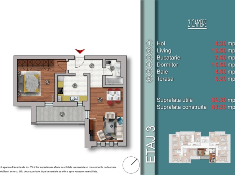 • Suprafață: 53.0 m² utili