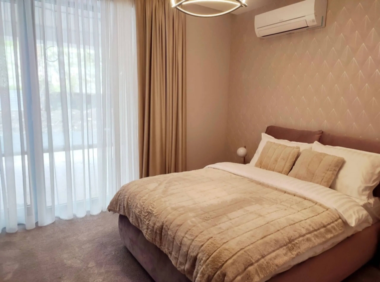 Apartamentul se află într-un bloc nou, dotat cu piscină exterioară și parcare subterană, detalii care fac diferența în viața de zi cu zi.