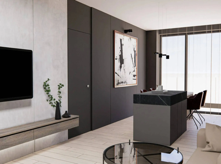 Tipul de apartament cu 2 camere propus spre vanzare mai este disponibil doar la etajul 1 al imobilului cu regim de inaltime S+P+6E-11E si beneficiaza de o suprafata utila totala de 69,50 mp, din care 12,70 mp terasa de care beneficiaza fiecare camere. Livingul +bucataria de 31,10 mp creeaza un spațiu deschis, unde se poate amplasa o canapea orientată spre zona de relaxare, iar în apropiere, zona de luat masa. O insulă sau bar de bucătărie poate acționa ca un element de separare și totodată funcțional dand spatiului un ambient sofisticat si modern.