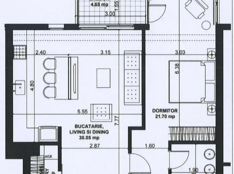 Living generos cu zonă de dining și bucătărie open-space – 30,05 mp