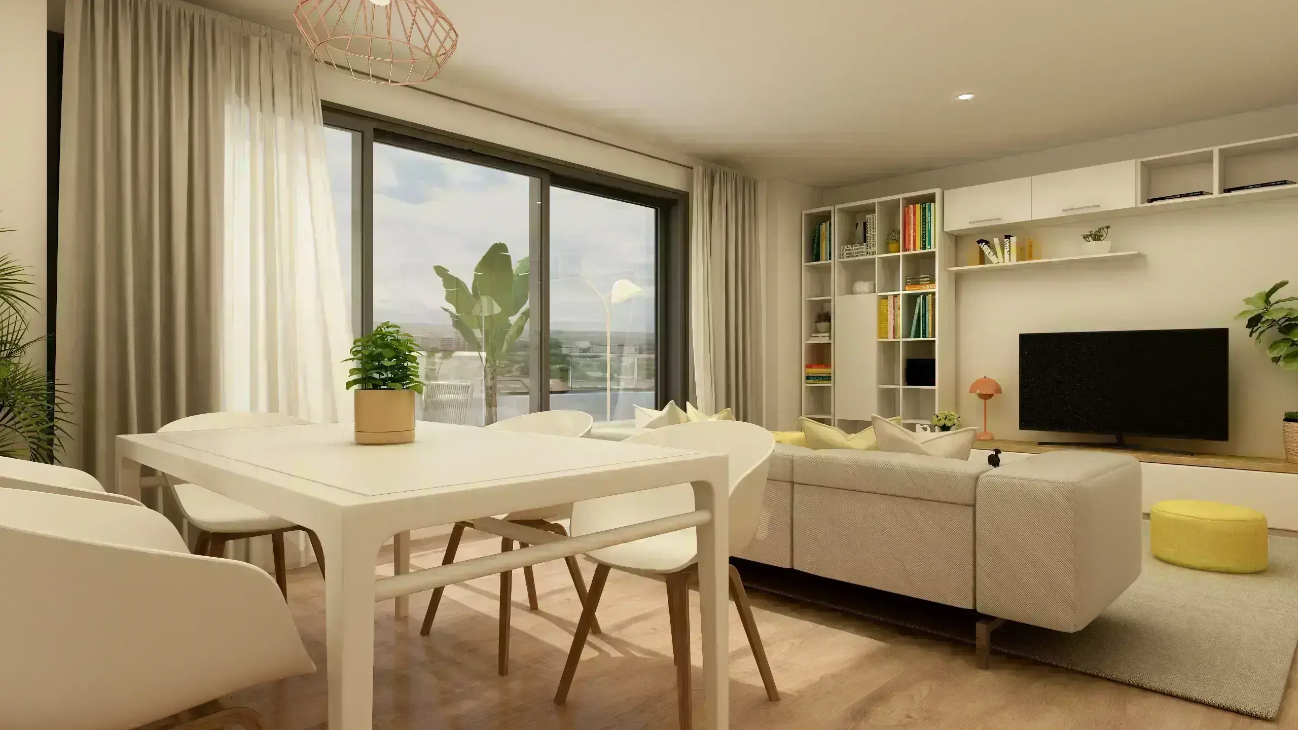 Locuinta este alcatuita din un dormitor, un living cu bucatarie deschisa, o baiei, un hol si terasa.
