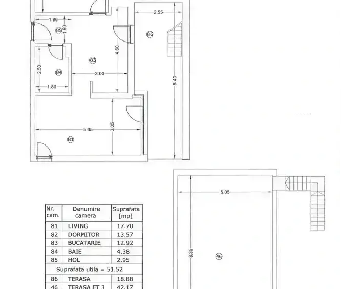Apartamentul are suprafata utila totala 112,57 mp din care terasa 42,17 mp si balcon 18,88 mp Finisajele și băile complet echipate sunt un mare avantaj, iar faptul că actele sunt deja pregătite pentru semnarea contractului face procesul de mutare mult mai simplu.