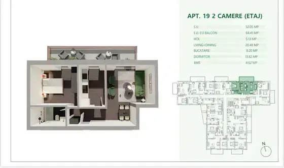 • Suprafață: 52.05 m² utili