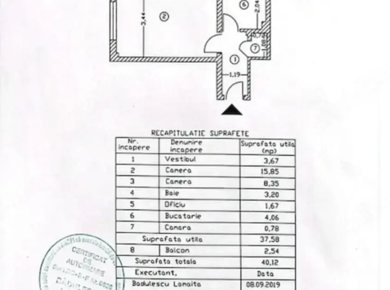 Cu o suprafață utilă de 37,58 mp (40,12 mp total), apartamentul este inteligent organizat astfel încât fiecare spațiu să fie folosit la maximum:
