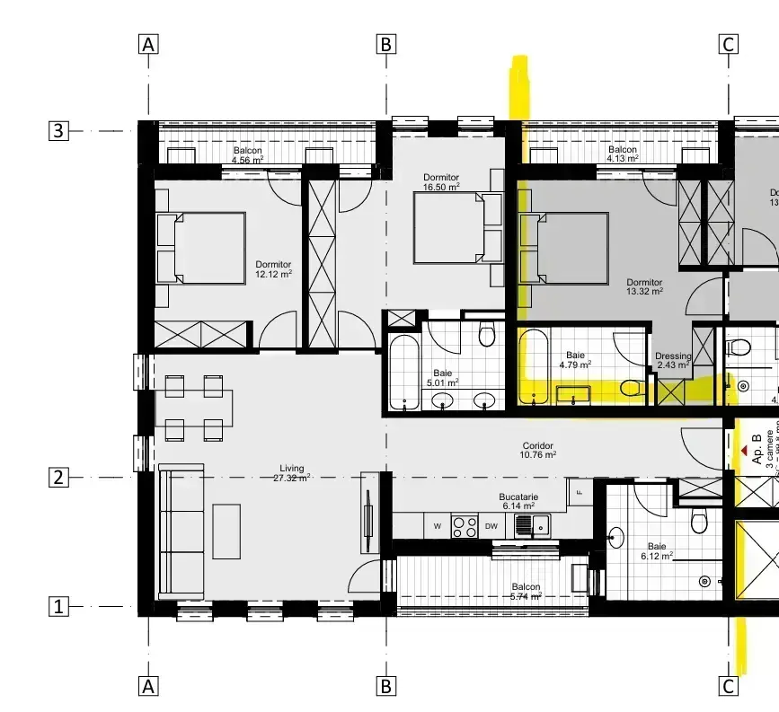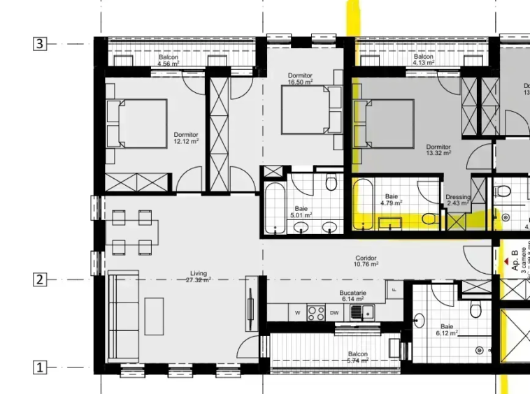 Acest imobil cu arhitectura moderna va ofera sansa de a investi pe termen lung pentru dumneavoastra si familie intr-un apartament cu 3 camere semidecomandat su 83,97 mp, completat de un balcon 5,74mp si un balcon 4,56mp