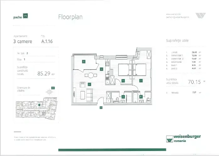 • Suprafață: 70.15 m² utili