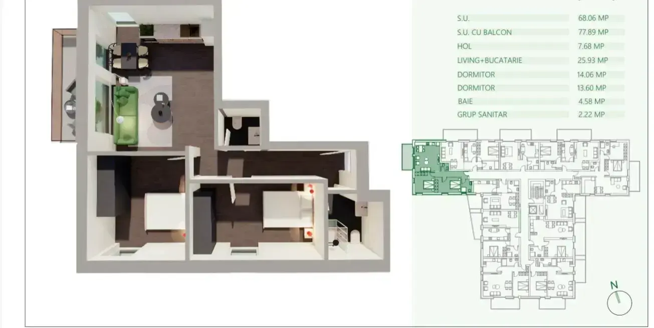 • Suprafață: 68.21 m² utili