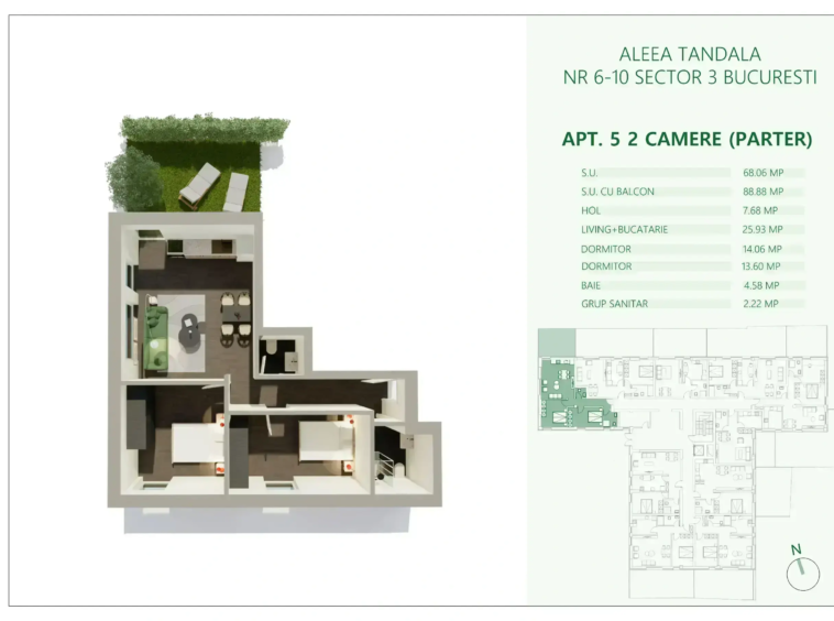 • Suprafață: 68.35 m² utili
