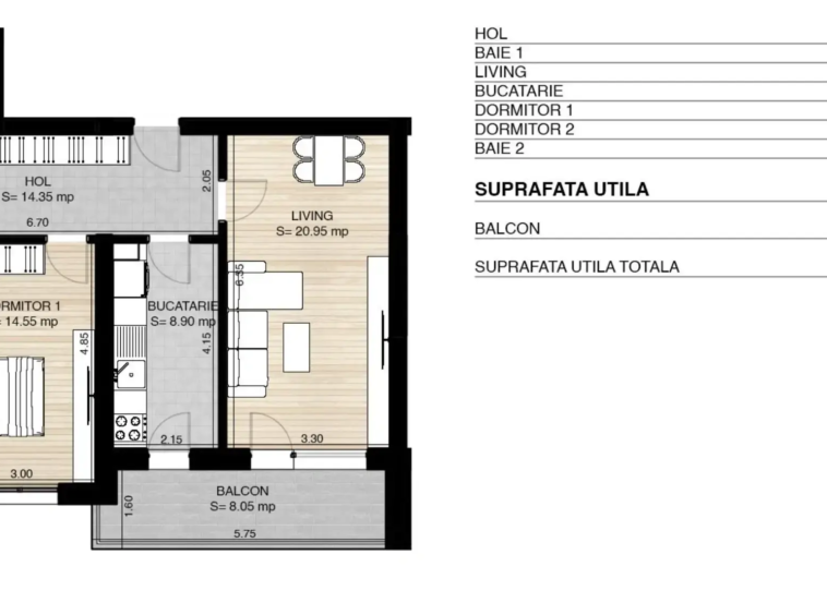 Balcon: 8,05 mp