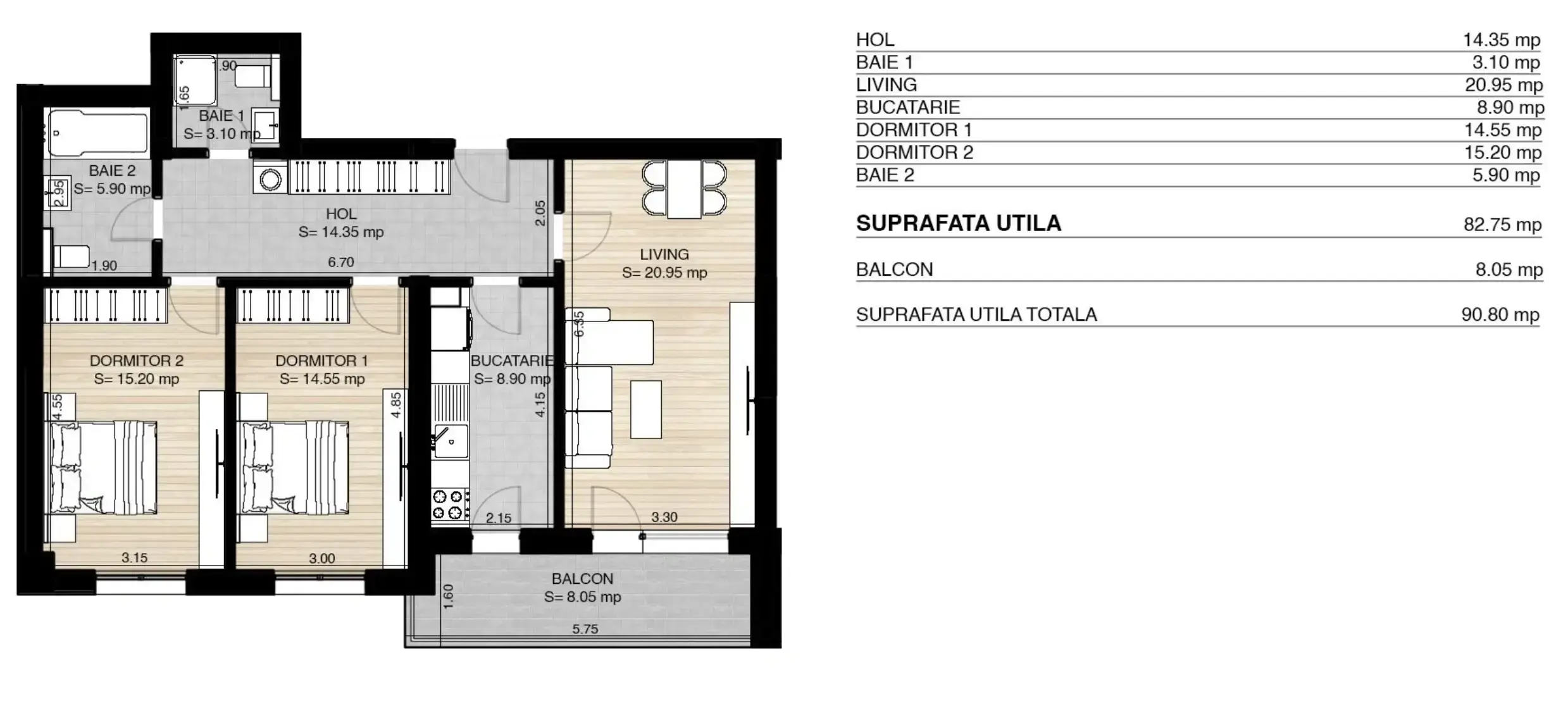 Suprafață utilă: 90,80 mp