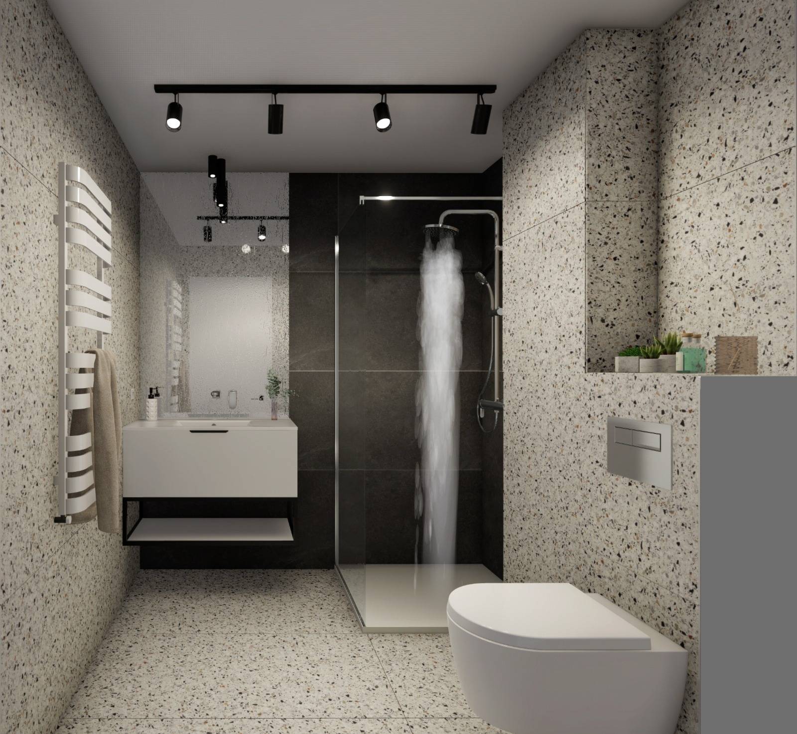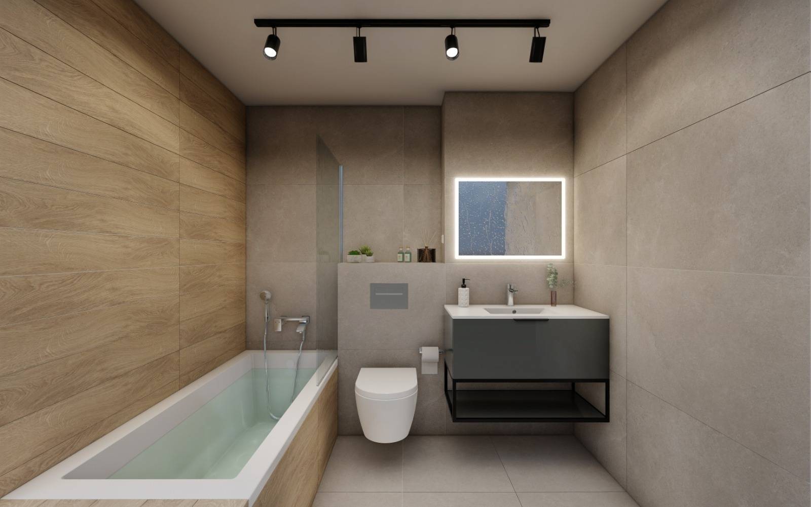 * Obiectele sanitare sunt de la Rocca cu baterii Hans Grohe