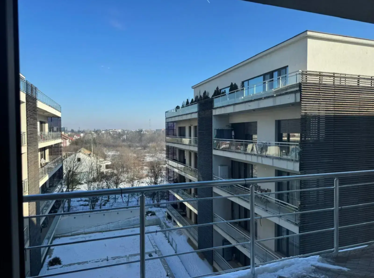 Apartamentul beneficiază de vedere liberă către o zonă frumos amenajată, oferind liniște, intimitate și un cadru plăcut. Datorită orientării Est, locuința este luminoasă și primitoare pe tot parcursul zilei.