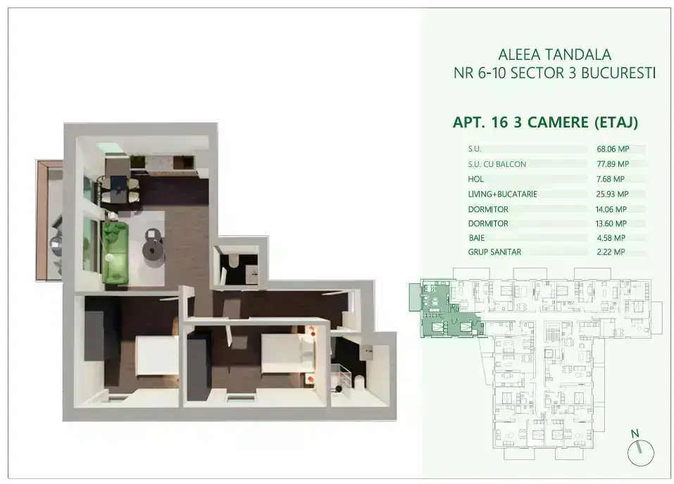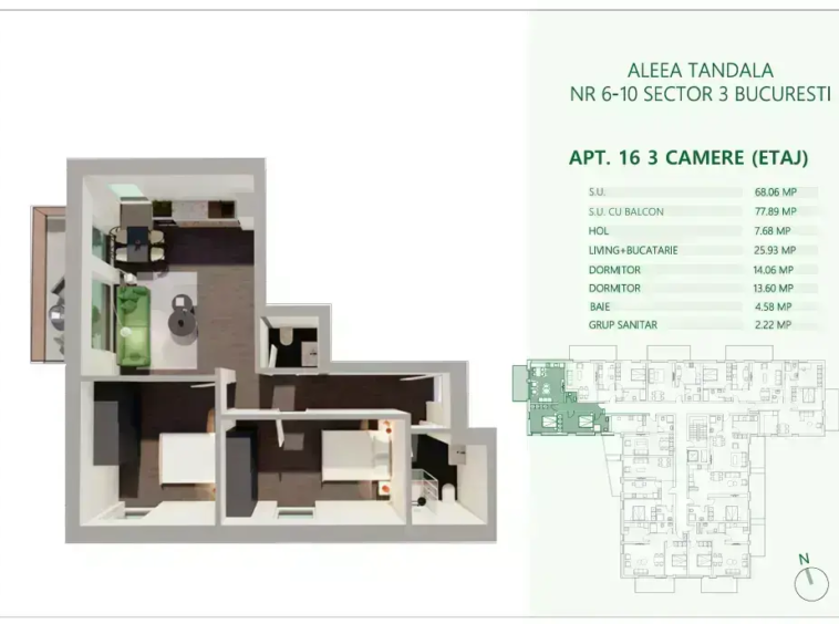 • Suprafață: 68.21 m² utili