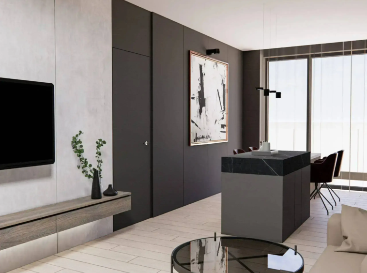Tipul de apartament cu 4 camere propus spre vanzare mai este disponibil la etajul 1 al imobilului cu regim de inaltime S+P+6E-11E si beneficiaza de o suprafata utila totala de 154,70 mp, din care 46,70 mp terasa de care beneficiaza fiecare camere. Livingul +bucataria au impreuna 33,10 mp si creeaza un spațiu deschis, unde se poate amplasa o canapea orientată spre zona de relaxare, iar în apropiere, zona de luat masa. O insulă sau bar de bucătărie poate acționa ca un element de separare și totodată funcțional dand spatiului un ambient sofisticat si modern.