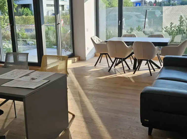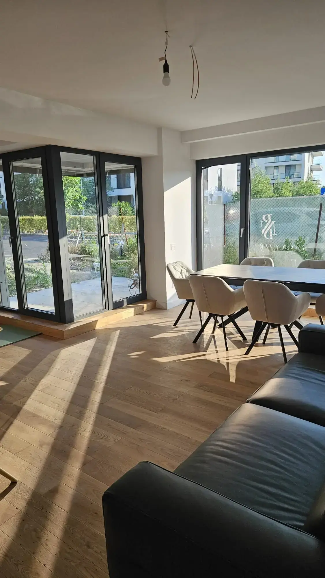 Confortul termic este asigurat prin încălzire în pardoseală, iar ferestrele mari din aluminiu aduc un plus de lumină naturală și o excelentă izolație fonică. Finisajele interioare, în nuanțe neutre și contemporane, creează o atmosferă elegantă și pot fi ușor personalizate în funcție de stilul viitorilor proprietari.