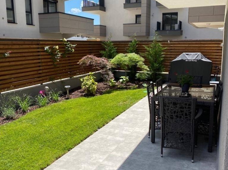 R&D Advisers va propune spre vanzare un superb apartament de 3 camere situat la parterul unui imobil construit in 2019, care face parte din Complexul Rezidential Arcadia din zona Domenii. Apartamentul are o suprafata utila de 54mp, o terasa de 39mp si o gradina privata de 30mp. Apartamentul beneficiaza de centrala proprie si incalzire prin pardoseala, aer conditionat, supraveghere video, sistem de alarma cu interventie. Apartamentul este mobilat si utilat premium, toata casa este de tip smart home, absolut totul putand fi controlat din telefon, de la reglarea temperaturii, controlul iluminatului, pana la draperii si obloane. Terasa si curtea sunt amenajate cu ajutorul unui peisagist iar gazonul are instalatie automatizata de aspersoare. Apartamentul se vinde complet finisat si cu bucataria completa. La cerere se poate vinde si complet mobilat. In pretul apartamentului intra si 1 loc de parcare in subteran.