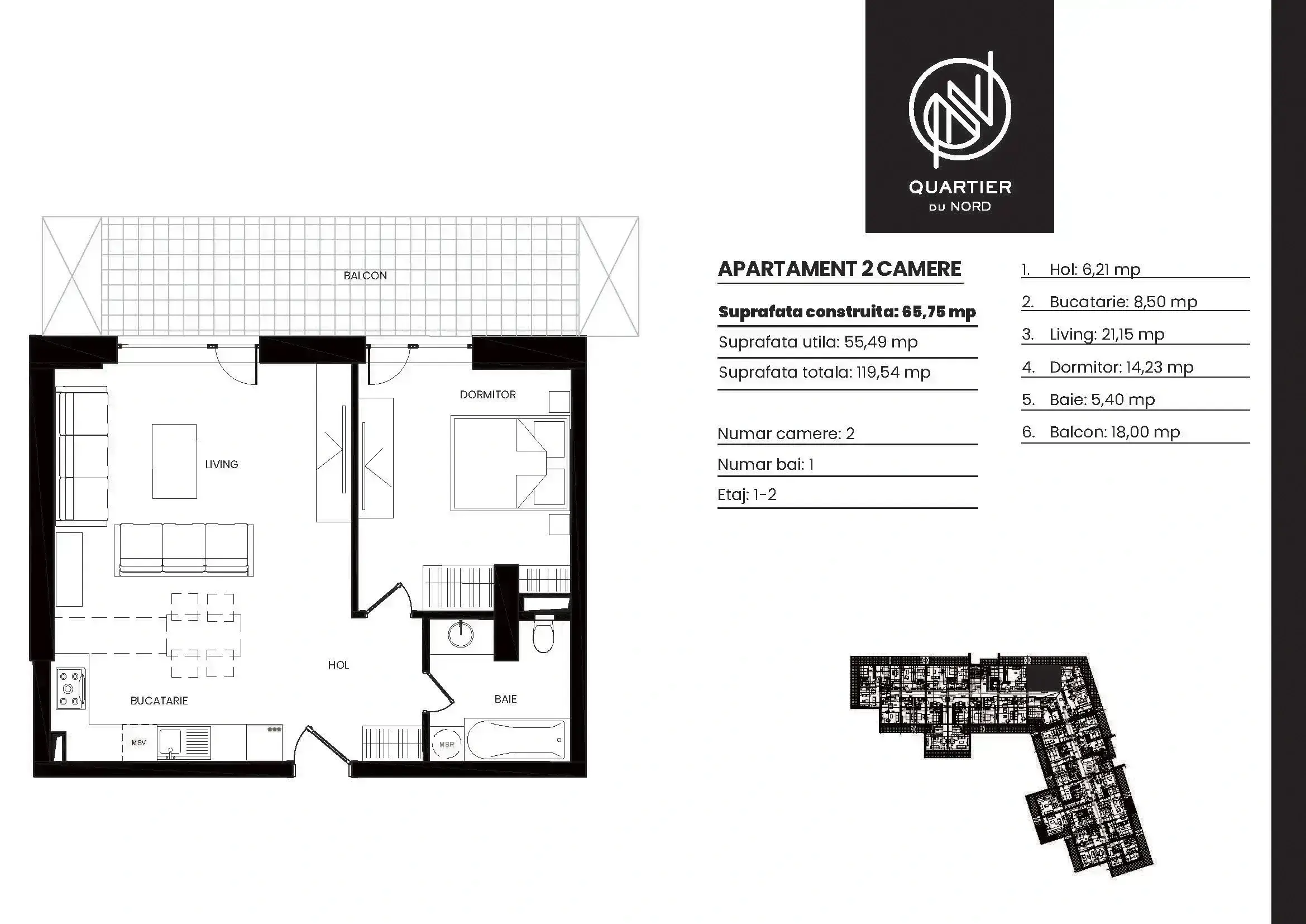 Apartament Modern | 2 Camere | Quartier Du Nord