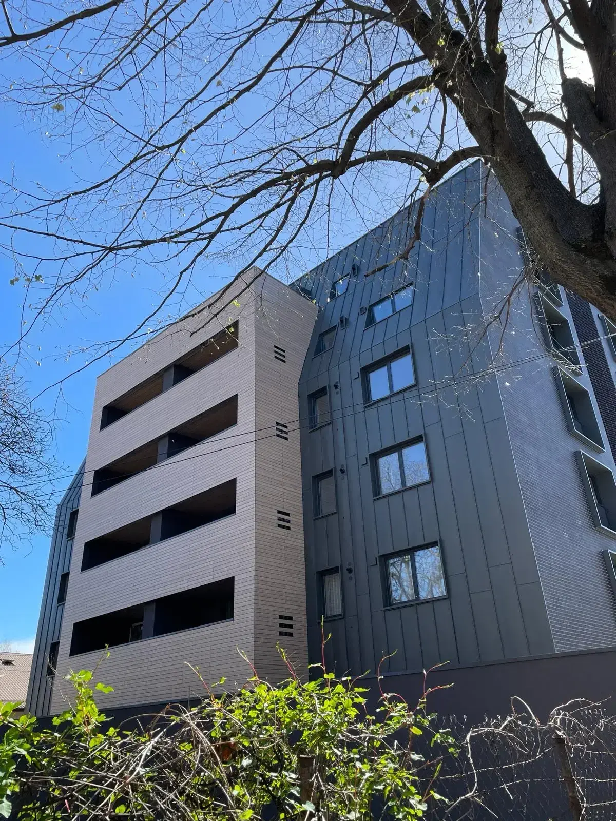 Fatada ventilată cu plăci HPL și cărămidă aparentă tip Klinker, respectând riguros randările prezentate din punct de vedere coloristic.