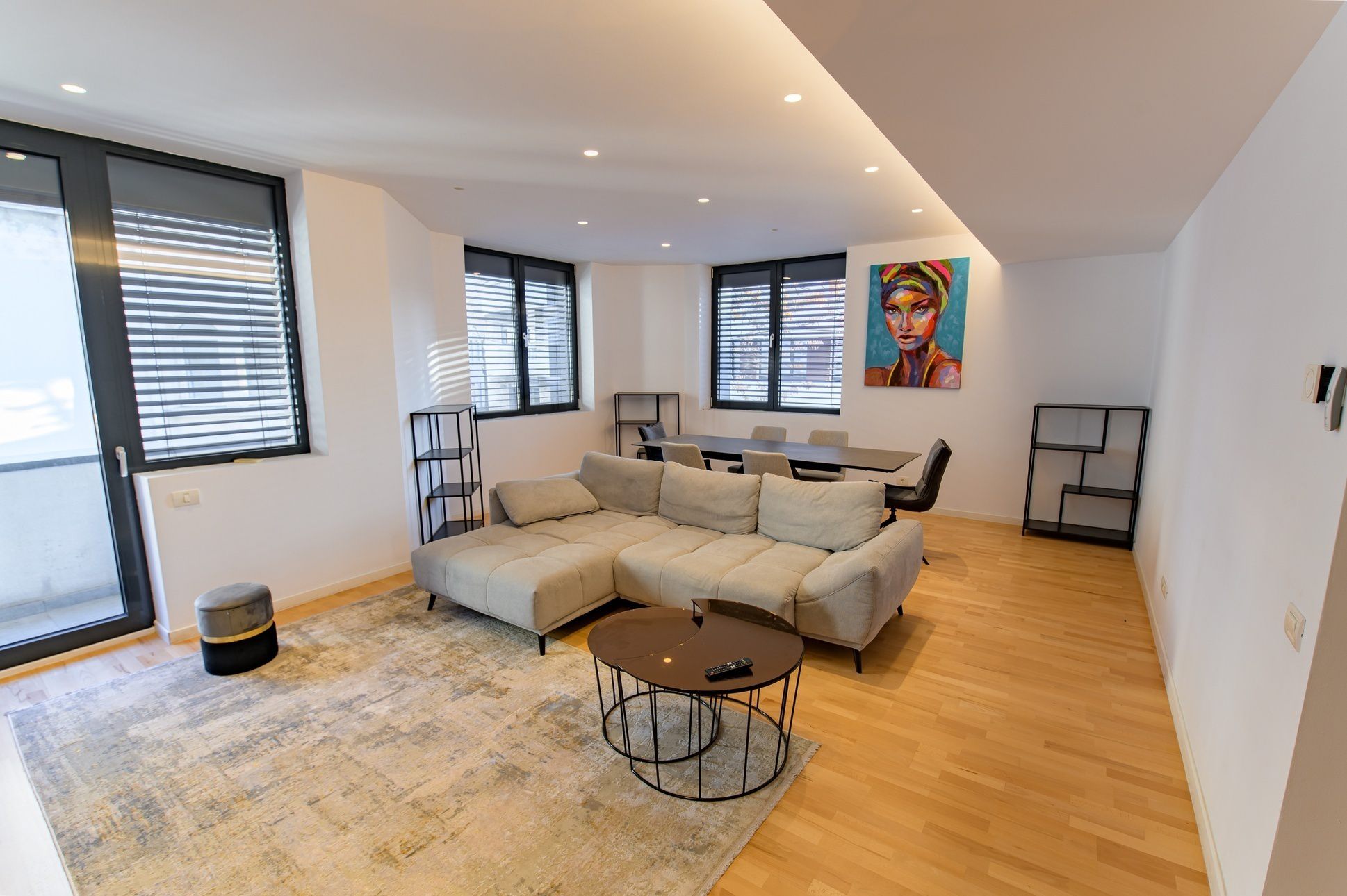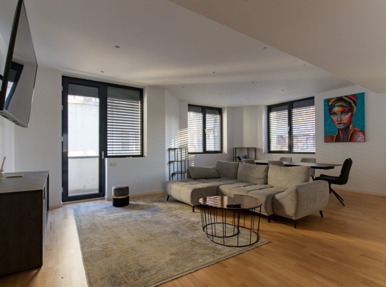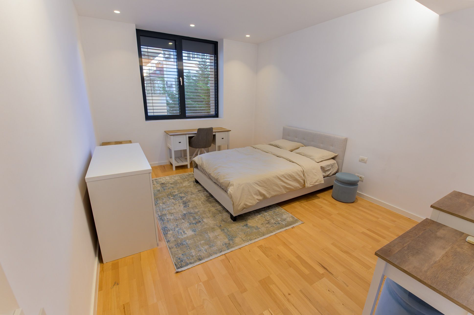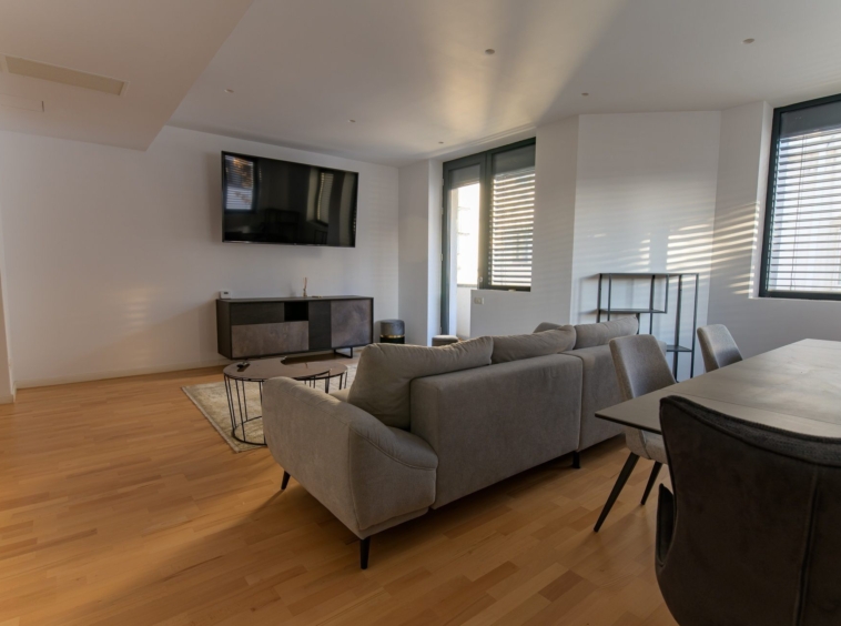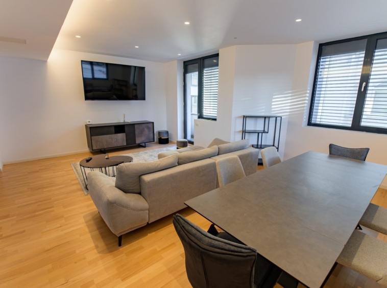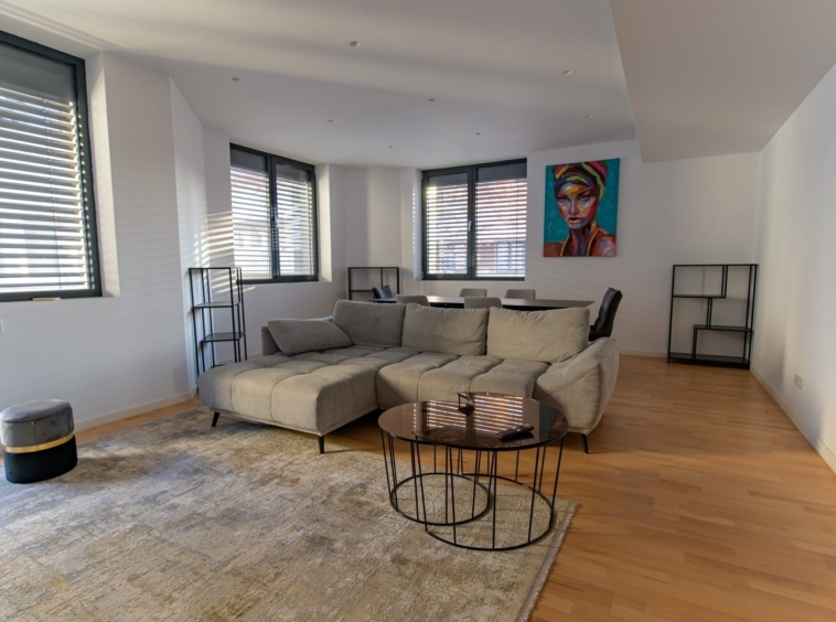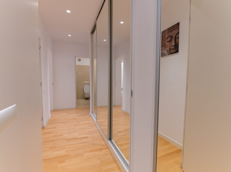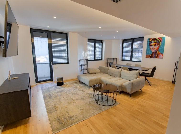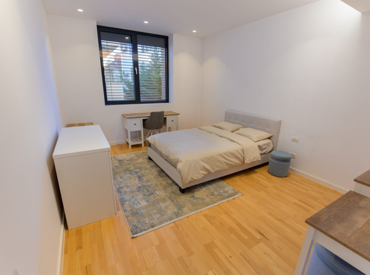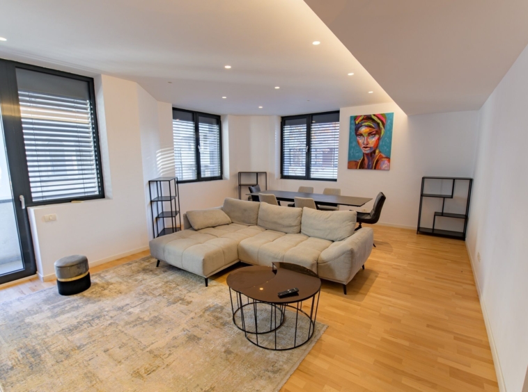 Mobilierul personalizat și parchetul din lemn masiv aduc un plus de rafinament și confort ambientului. Beneficiind de dotări moderne precum încălzirea prin pardoseală și sistemul de climatizare, apartamentul creează un mediu de trai plăcut și adaptabil.