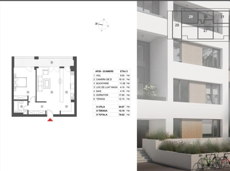 Locul de parcare este optional și poate fi achiziționat la un preț de 22.000 euro + TVA.