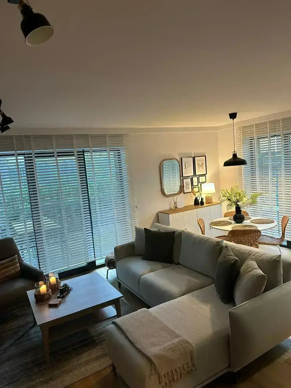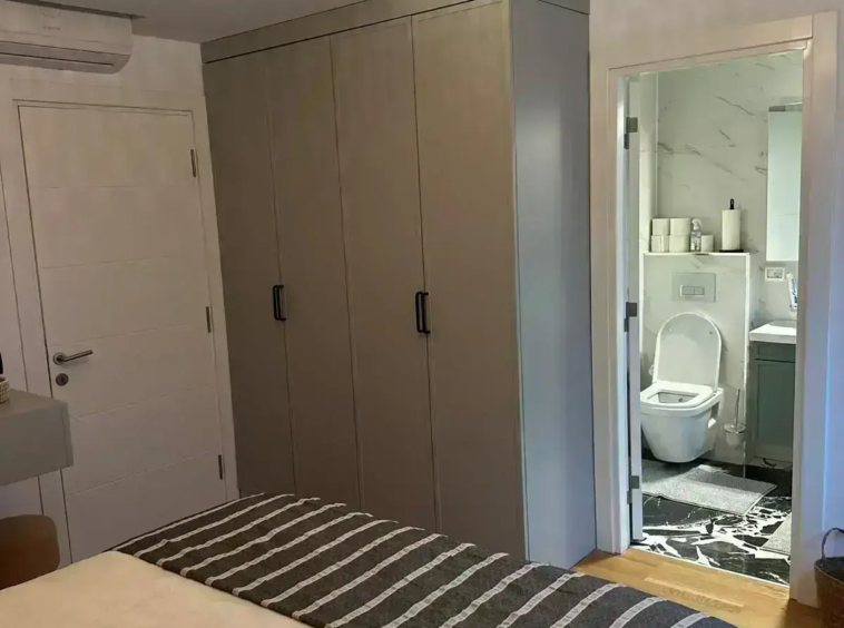 Locuinta este alcatuita din un dormitor, un living +loc de luat masa, o bucatarie inchisa ,doua bai,terasa si gradina .