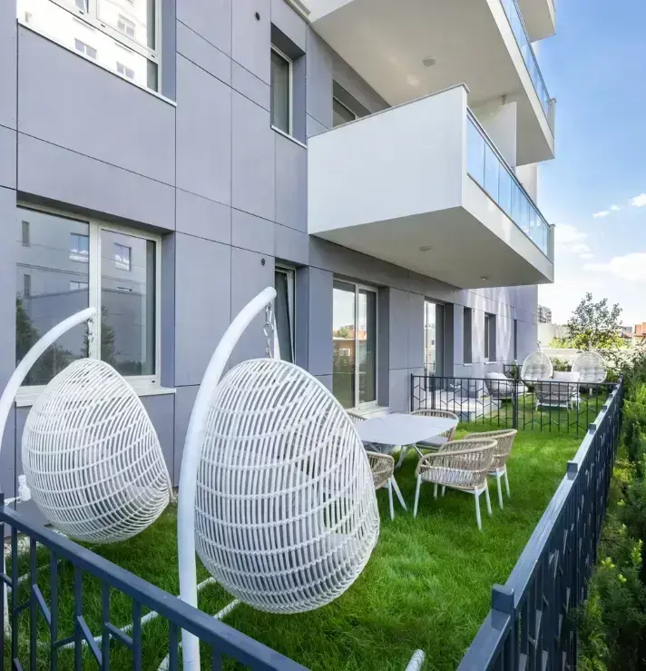 Ansamblul dispune de un parc propriu de 2.500 mp, parte dintr-o suprafață impresionantă de 9.650 mp de spații verzi, special amenajate pentru relaxare și recreere. La dispoziția rezidenților se află o sală de fitness complet echipată, locuri de joacă pentru copii și un Lounge generos de 200 mp.
