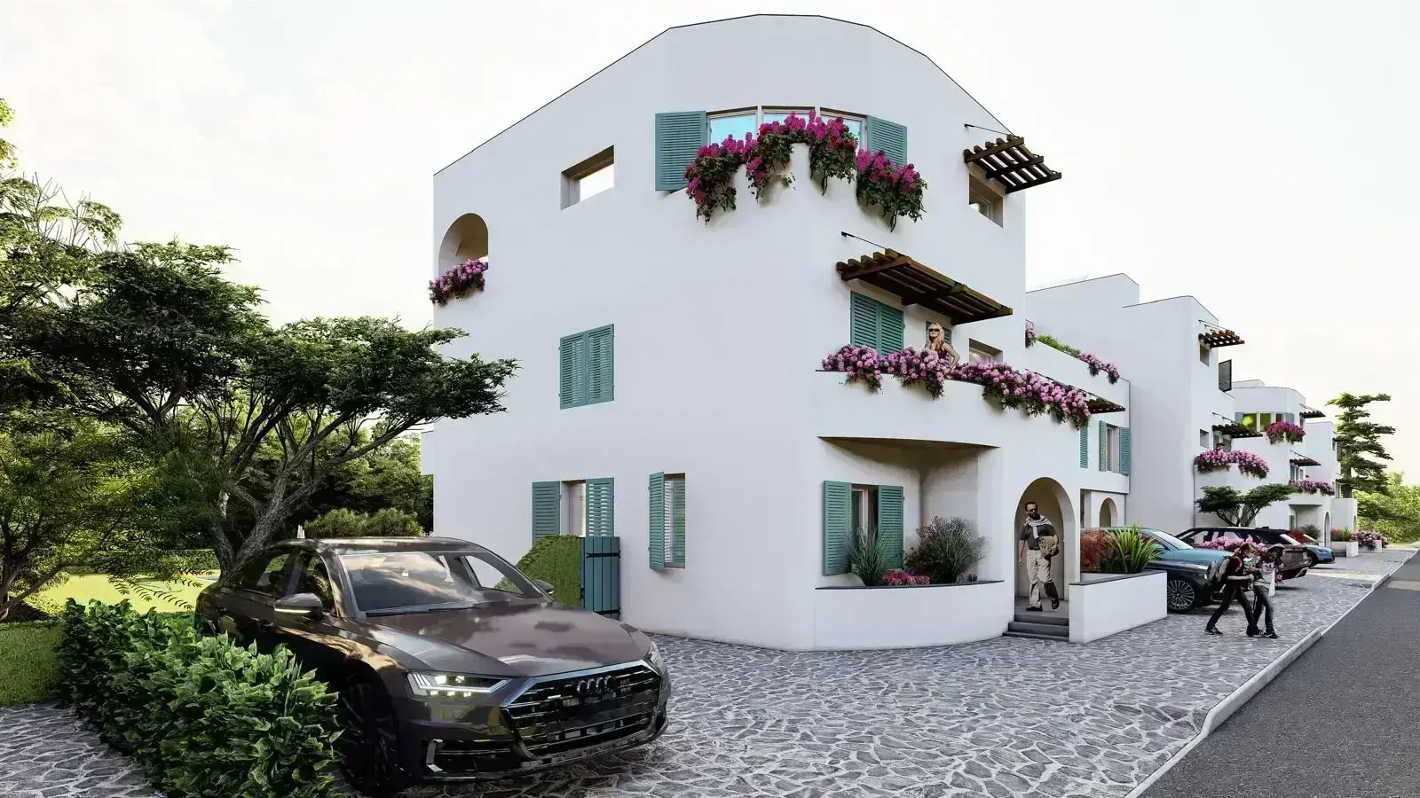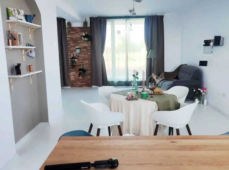 Spațiu deschis, lumină naturală din plin, arcade elegante și finisaje premium. Ferestrele mari transformă fiecare cameră într-un tablou solar, iar podelele albe și curate sporesc senzația de aerisire și calm. E Grecia, dar cu tot confortul unei locuințe contemporane.