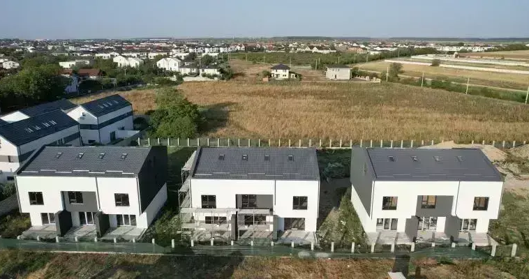 În acest moment, primele trei triplexuri au fost deja construite, iar casa despre care îți vorbesc se află chiar în mijlocul unuia dintre ele. Este un model de tip B, poziționat central în cadrul triplexului, fiind alegerea ideală pentru cei care își doresc un cămin funcțional, la un preț accesibil.