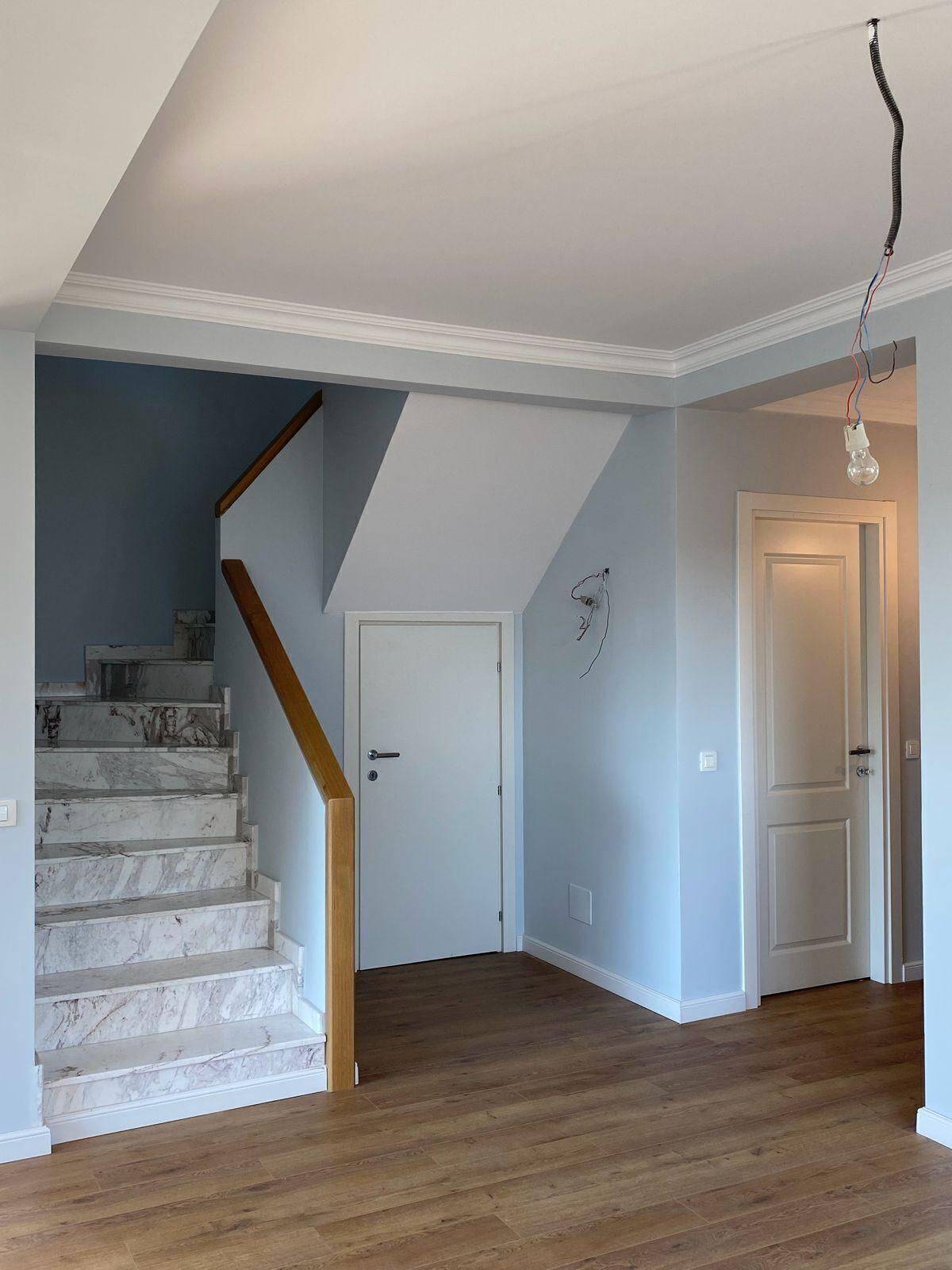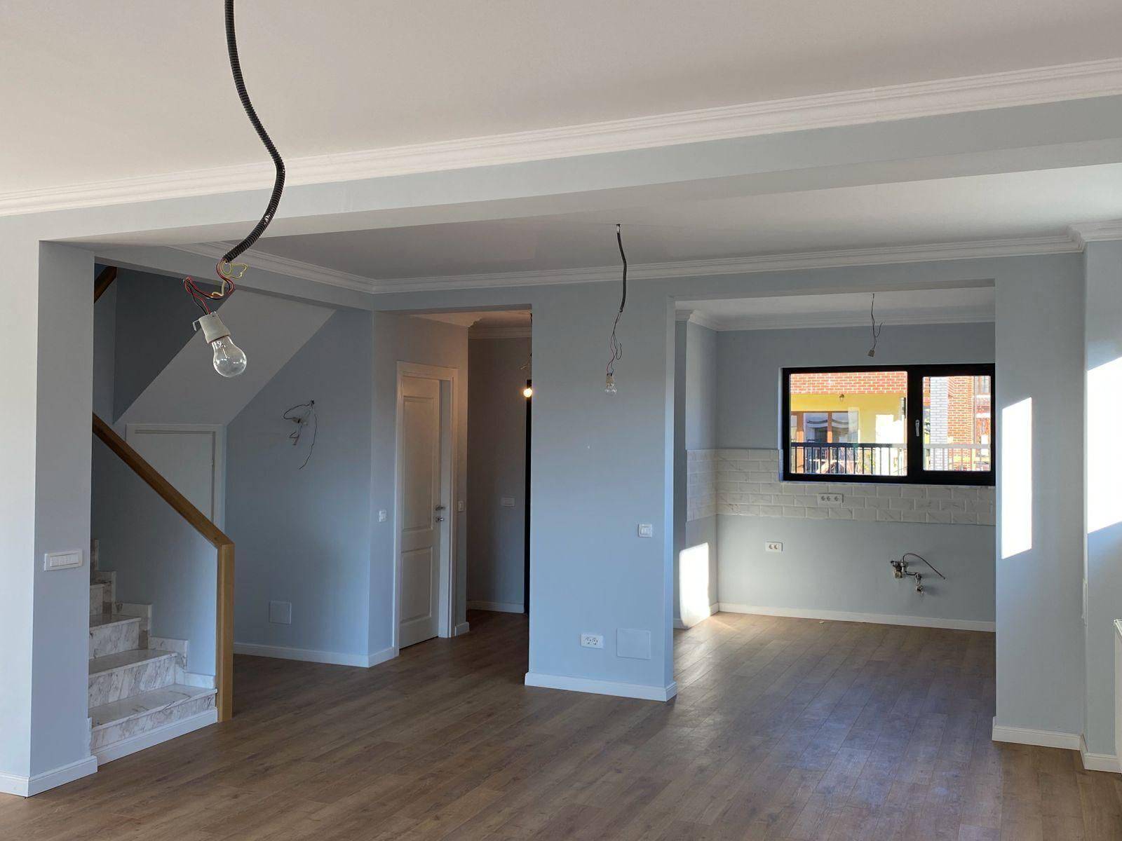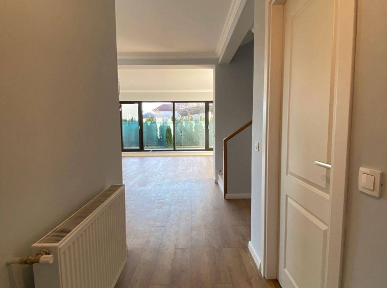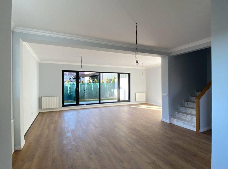 -La parter: hol, baie de serviciu, bucatarie, zona de dining, un living spatios cu acces spre terasa si gradina si un loc de depozitare sub scara.