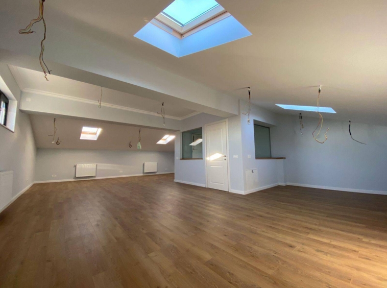 -La etajul 2: o mansarda inalta, open space de 75 mp, care beneficiaza de foarte multa lumina prin cele 4 ferestre velux.Toate utilitatile sunt trase astfel incat viitorul proprietar sa poata organiza spatiul dupa cum isi doreste. Exista posibilitatea amplasarii unei toalete sau a unei kitchinete.