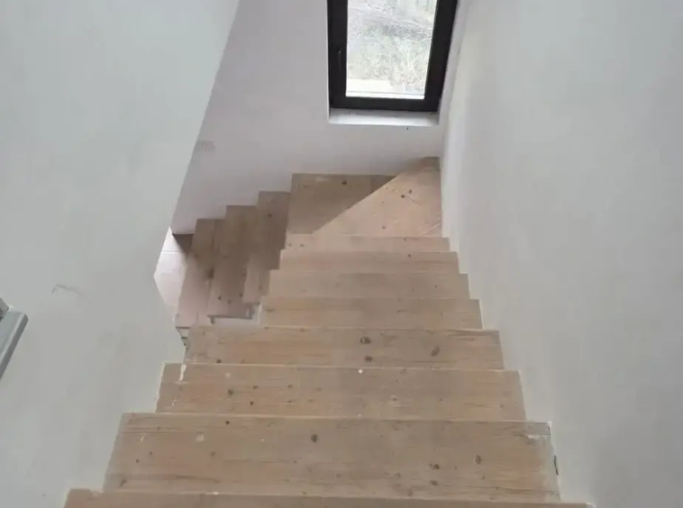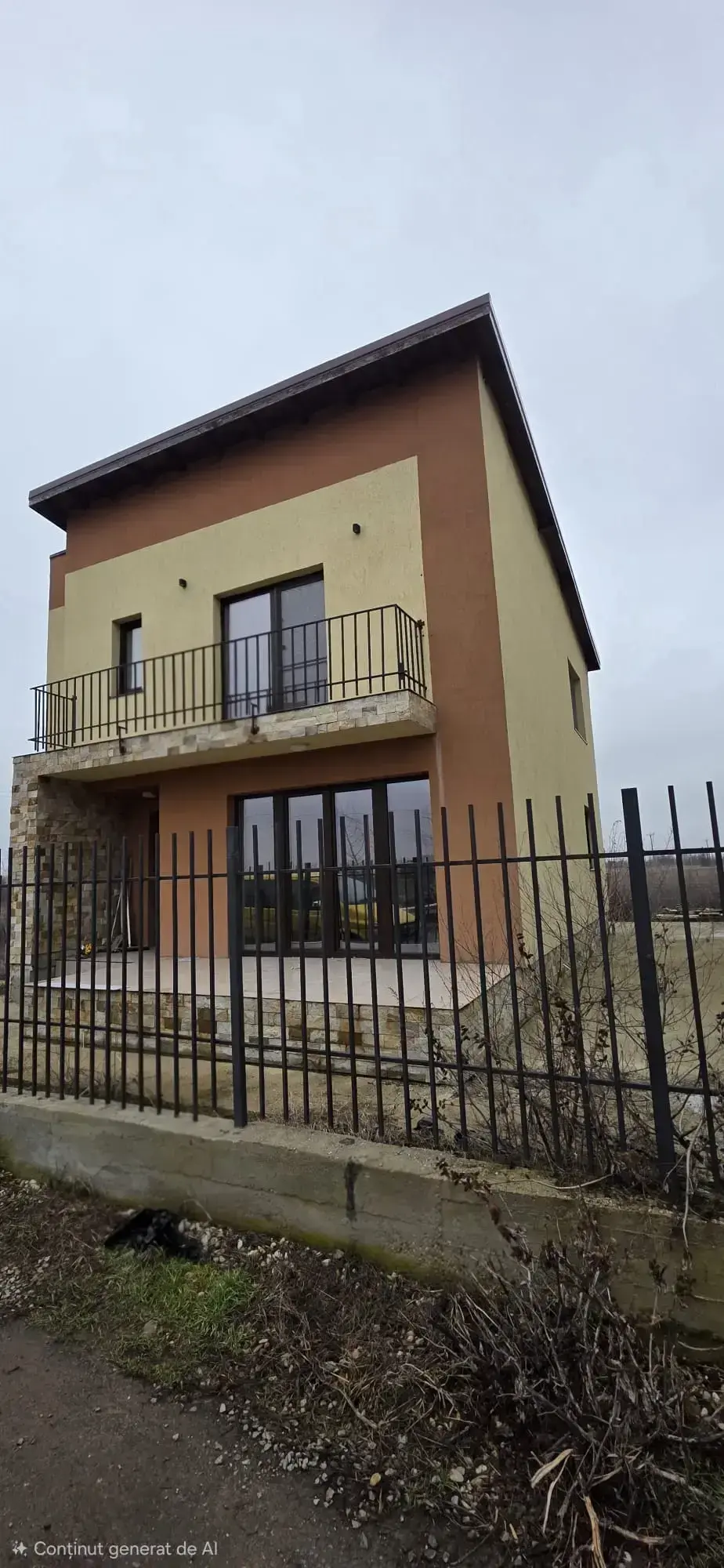 Este construită din cărămidă, cu izolație exterioară din polistiren de 15 cm, asigurând eficiență energetică ridicată.
