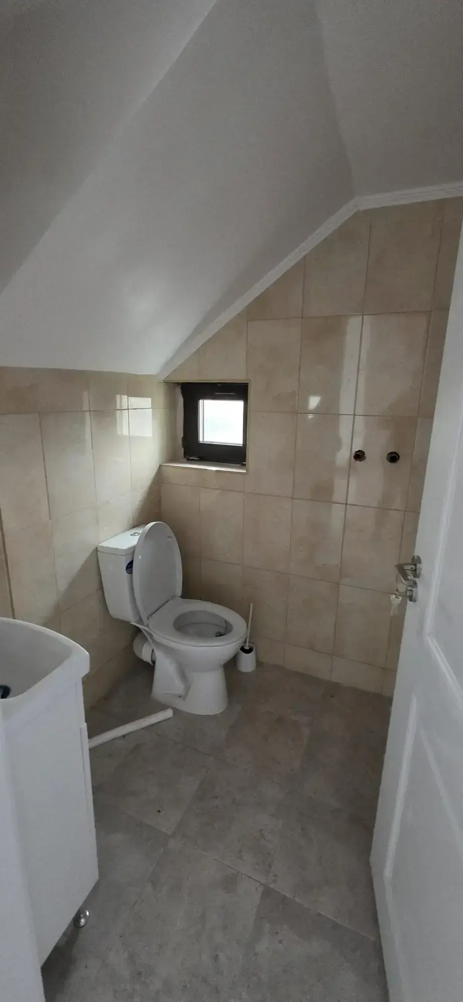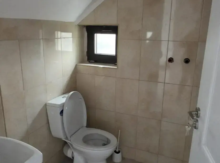 – La etaj se desfasoara trei dormitoare, dintre care unul este matrimonial cu baie proprie. Celelalte doua dormitoare sunt deservite de o baie comună.
