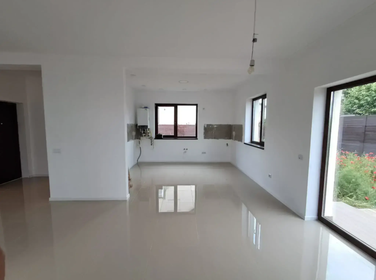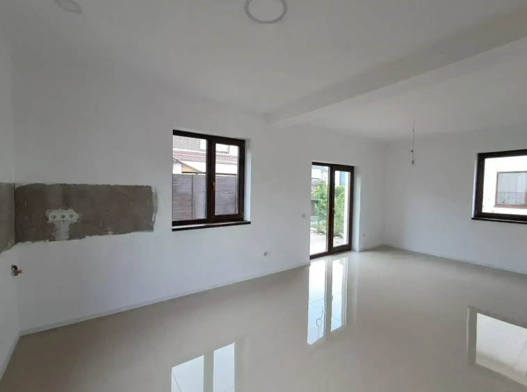 Parterul include un living spațios, integrat cu bucătăria, care poate fi deschisă sau separată, în funcție de preferințe. Baia de la acest nivel este dotată cu duș, iar din living se face accesul către terasa deja amenajată.