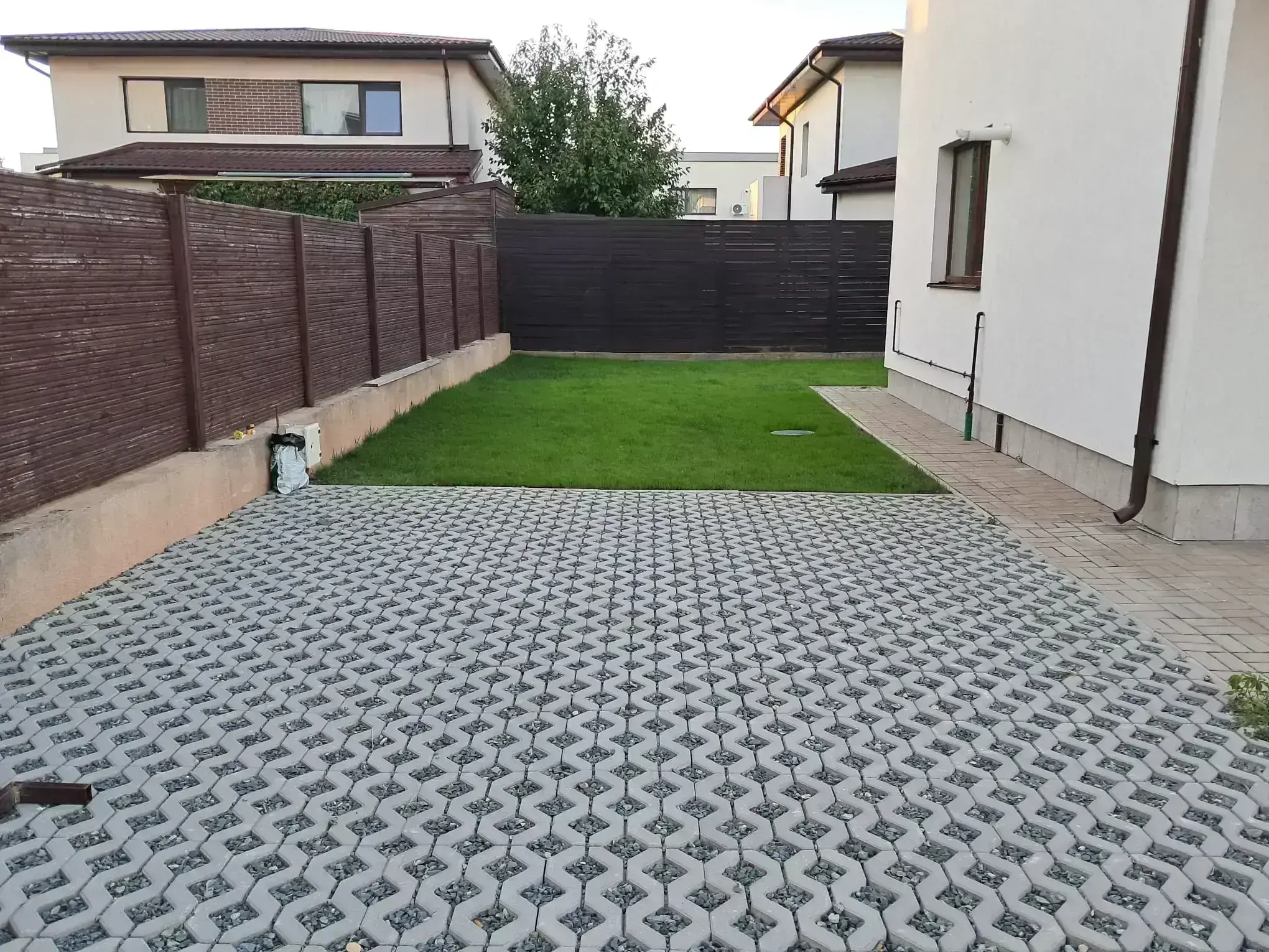 Beneficiezi de două locuri de parcare și de o curte amenajată cu gazon. Suprafața totală a terenului este de 255 mp, la care se adaugă 50 mp aferenți drumului de acces.