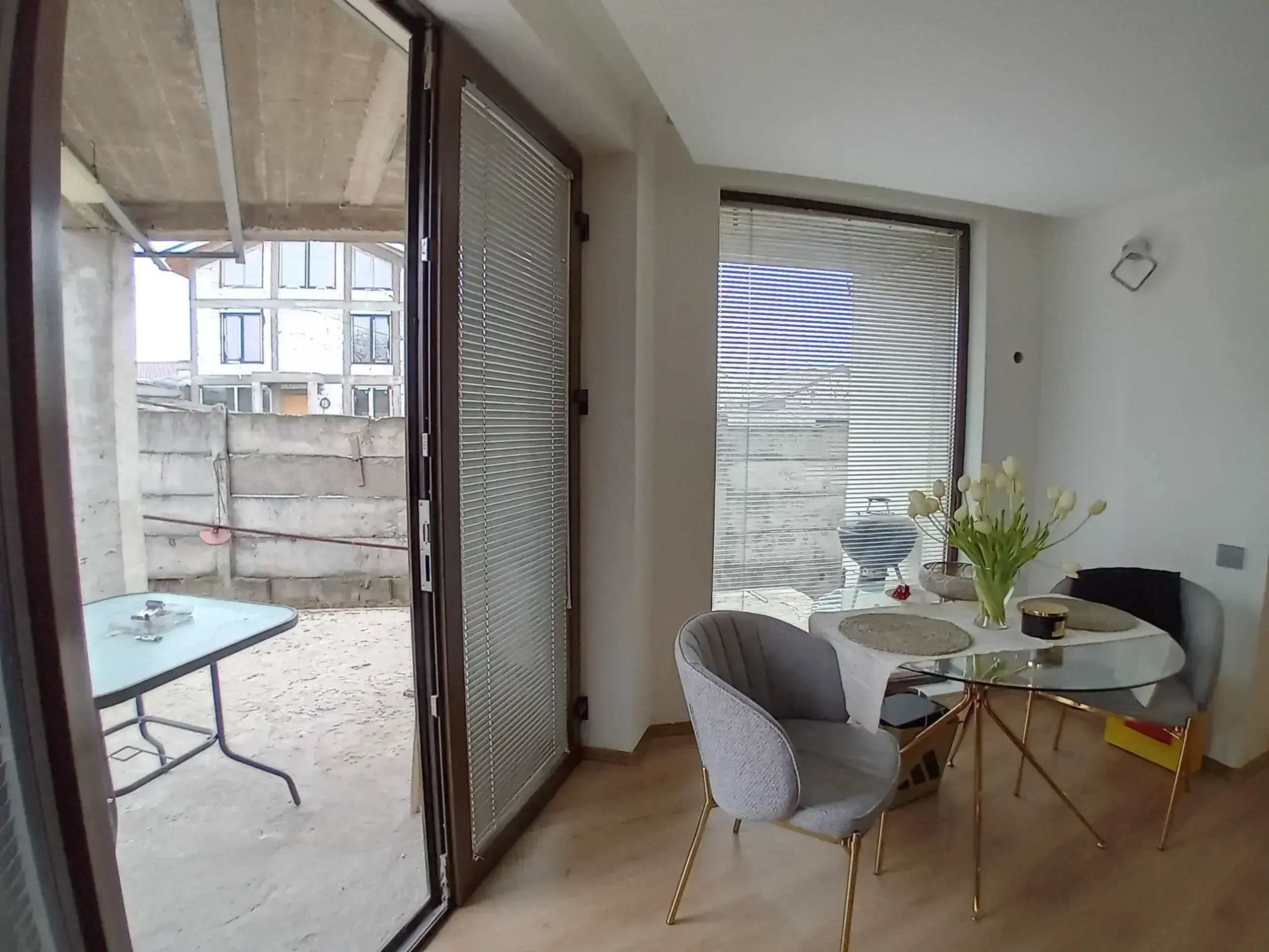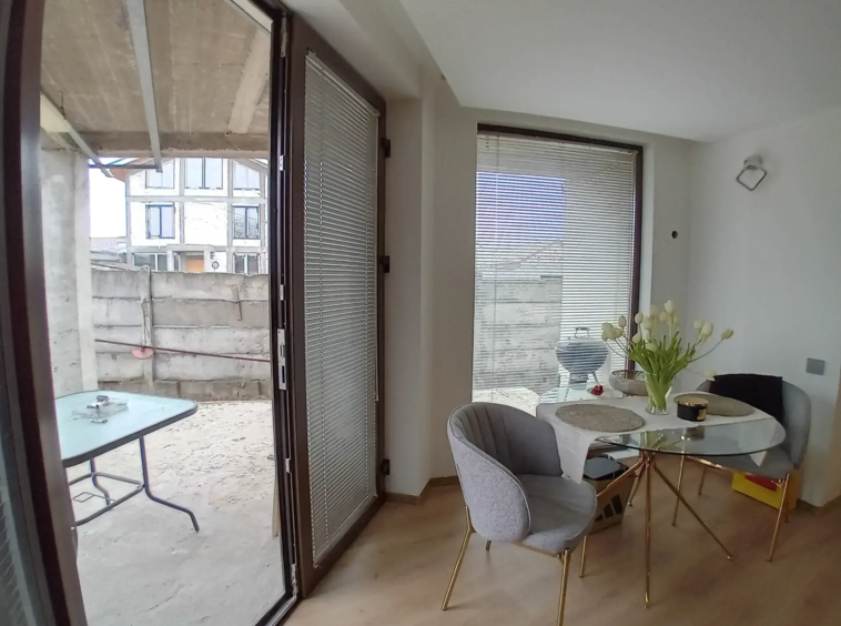 Interiorul fiind compus din living si dining cu acces spre terasa spatioasa de 17mp, bucataria, baie si spatiu depozitare la Parter, iar la Etaj sunt 2 dormitoare, 2 bai, un dressing si o terasa / balcon de 10mp.