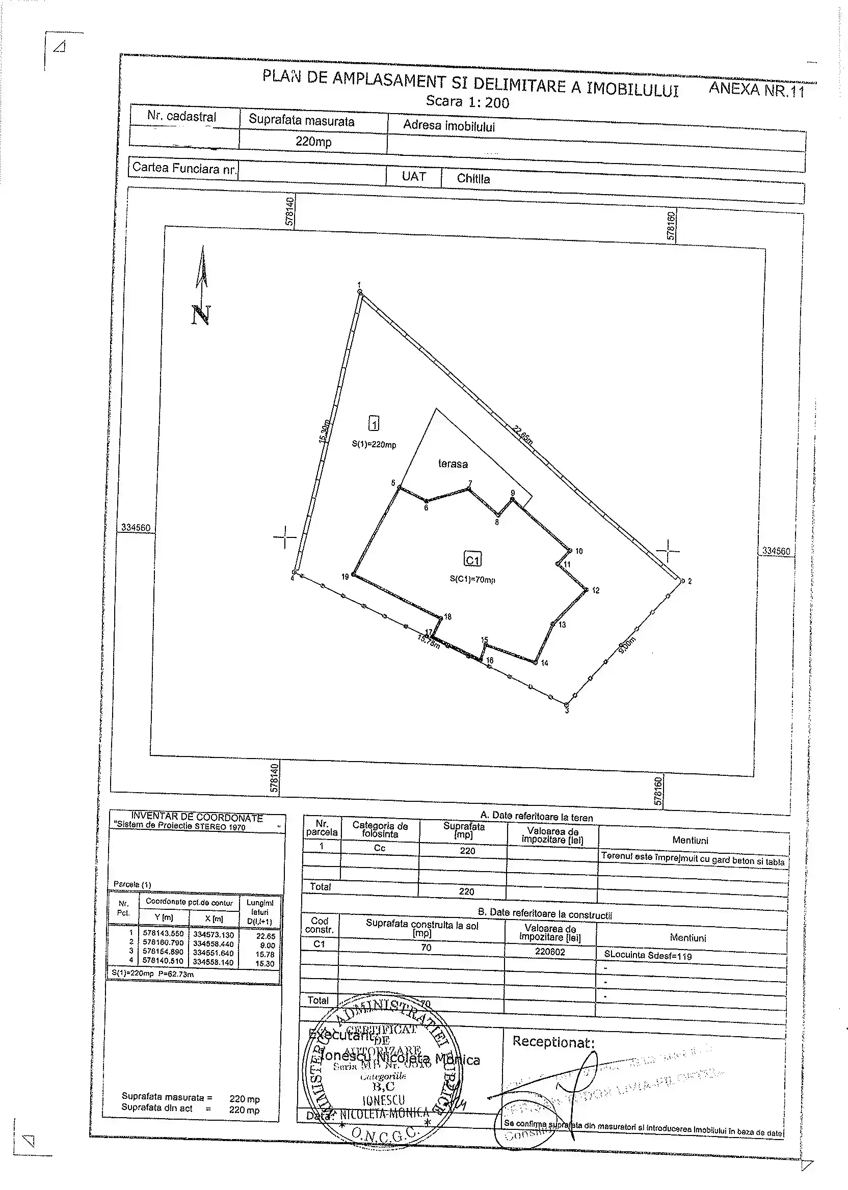 Constructia dateaza din 2010, cu un regim de inaltime P+M, pe un teren cu suprafata de 220mp.
