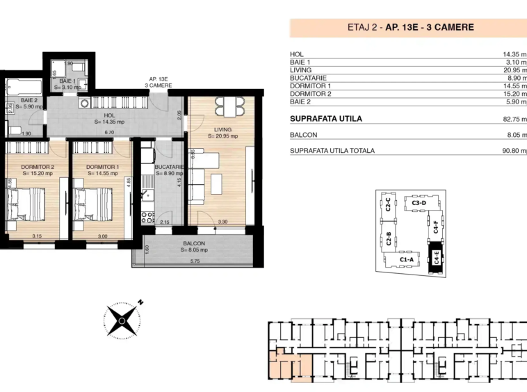 • Suprafață: 82.75 m² utili