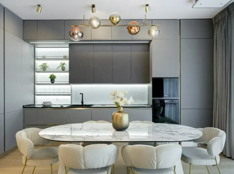 Materiale de lux: Gresie și faianță de import Italia (colecții premium), uși interioare cu înălțime extinsă fabricate în Grecia.