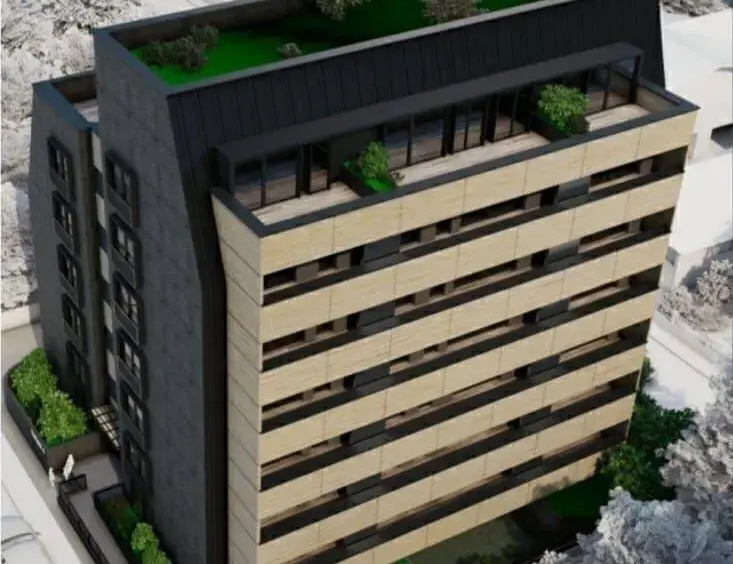 Imobil cu 3 camere situat într-un bloc boutique de 7 etaje, cu termen de finalizare în martie 2024. Imobilul se distinge prin utilizarea unei fațade ventilate cu plăci HPL și cărămidă aparentă tip Klinker, având termoizolație din vată minerală bazaltică (Rockwool) de 10 cm grosime pe întreaga suprafață a fațadei. Compartimentarea perimetrală se realizează cu cărămidă Porotherm de 40 cm, iar contorizarea pentru fiecare apartament (gaz, apă, energie electrică) se află în locuri special amenajate pe fiecare etaj. Iluminatul spațiilor comune se va realiza prin intermediul panourilor fotovoltaice.