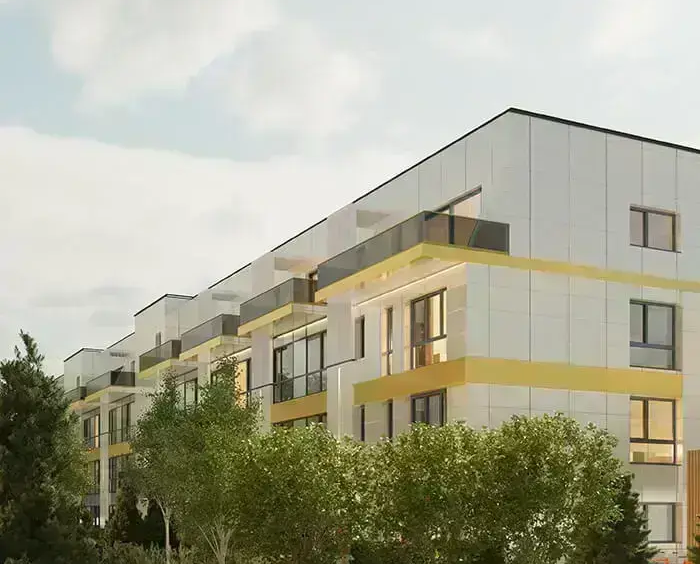 Fațade ventilate cu vată minerală bazaltică și panouri decorative cu textură de lemn