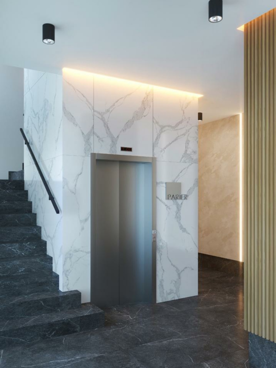Spațiile comune dispun de sisteme de iluminat arhitectural spectaculos Led, finisaje Premium și placări cu granit natural și piatră iar pe casa fiecărei scări sunt instalate lifturi performante rapide și silențioase. Viitorii rezidenți vor beneficia de locuri de parcare modernă dotată corespunzător. Copiii vor putea experimenta clipe de fericire și imaginație în spațiile de joacă destinate exclusiv din incinta ansamblului.