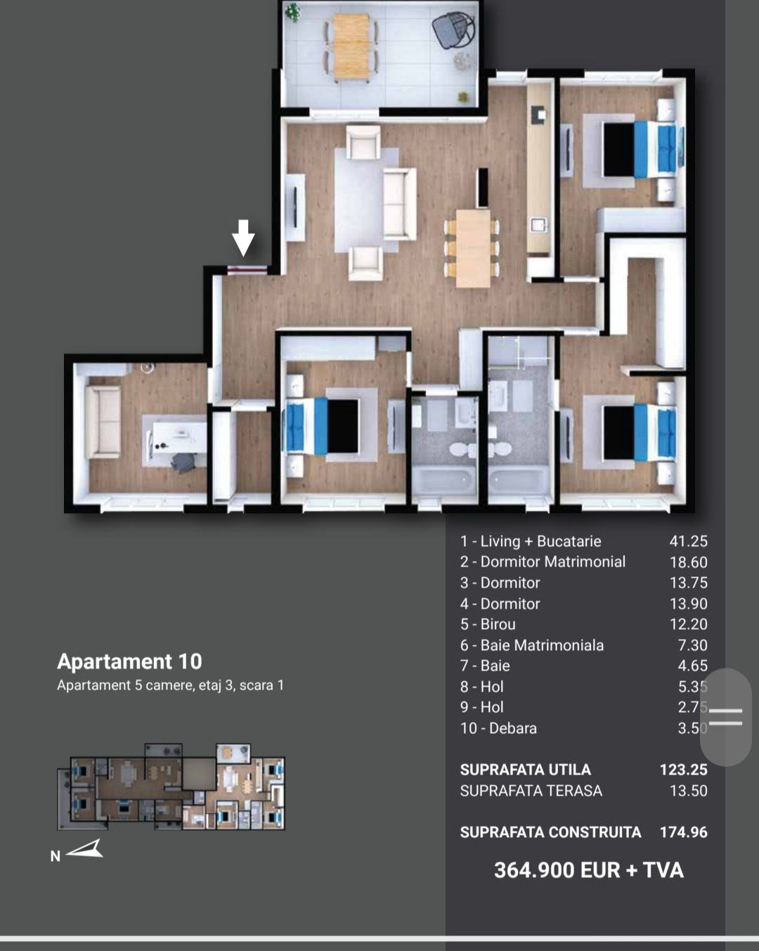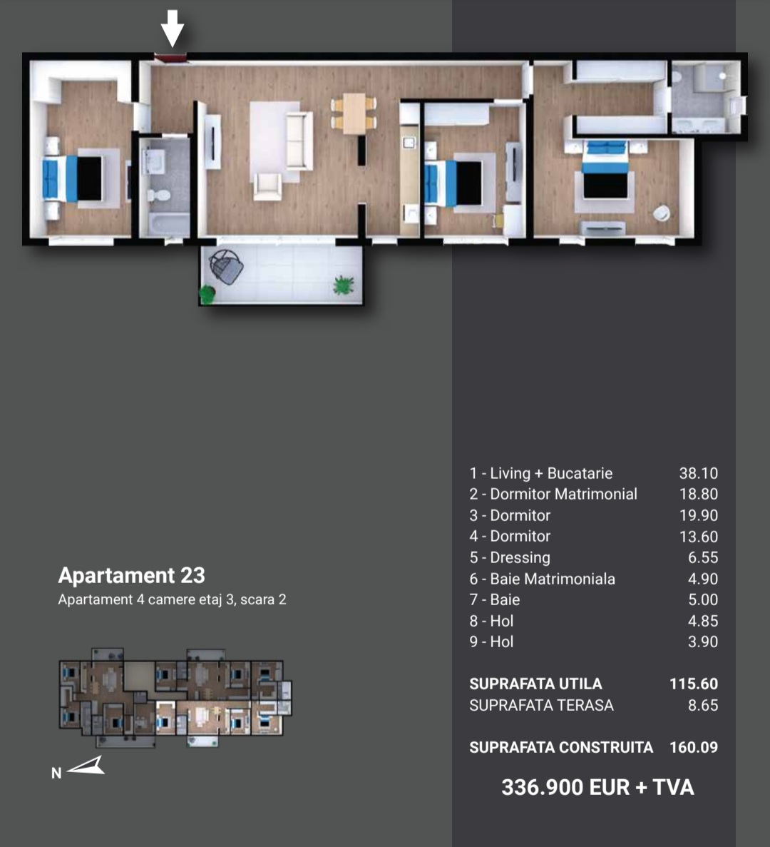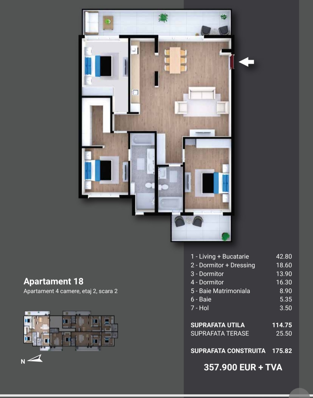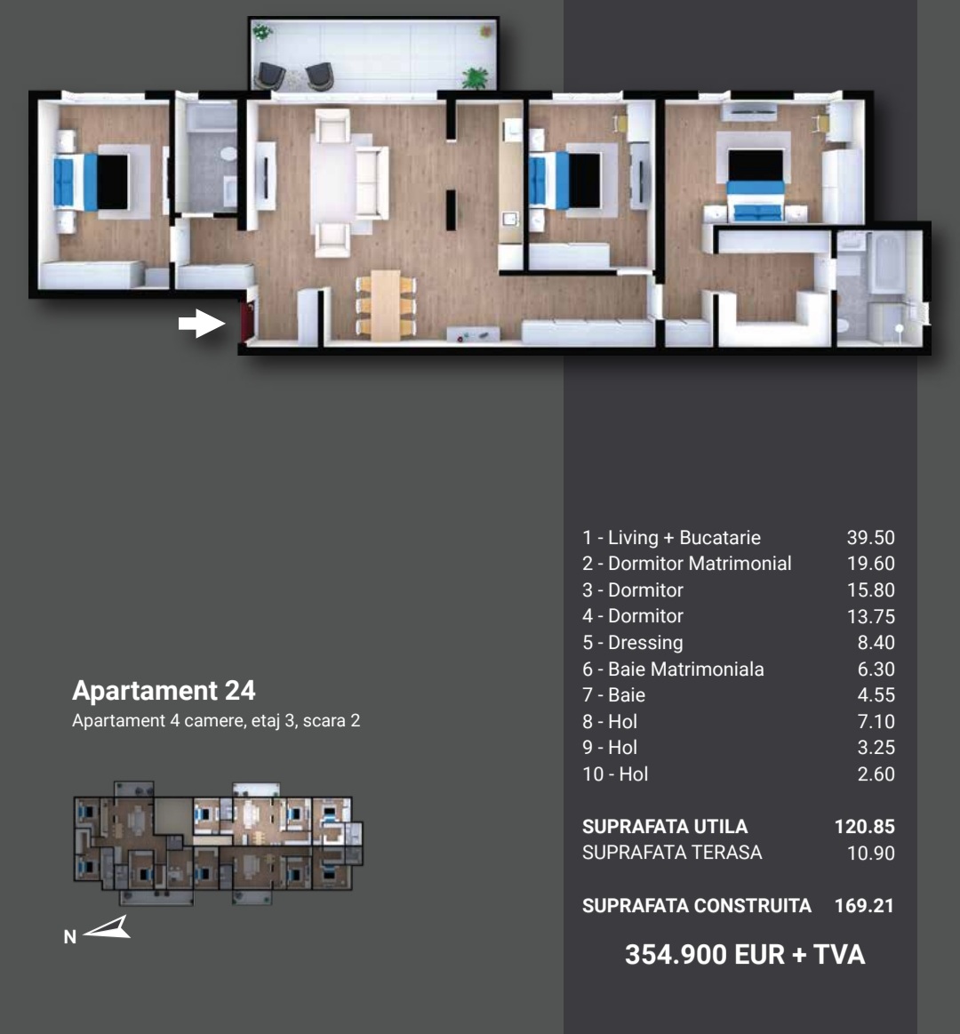 IMA Residence prezintă o arhitectură contemporană de excepție dispusă într-o clădire elegantă de imobile cu regim redus de înălțime P+3, compusă din apartamente de lux, compartimentate inteligent și funcțional cu câte 2, 3, 4 și 5 camere. Suprafețele generoase de locuit sunt cuprinse între 52 -178 mp, semidecomandate și sunt dotate cu bucătării open-space, spații vitrate mari și finisaje de lux atent proiectate și selecționate care redau o ambianță autentică și Premium fiecărei încăperi.