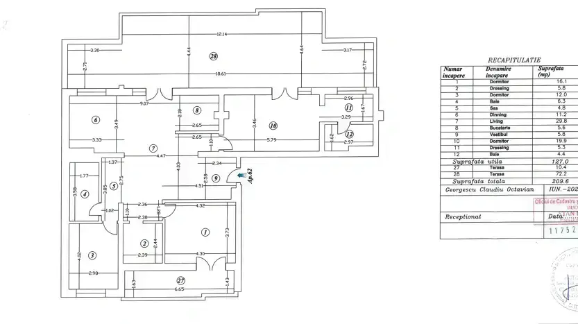 Dormitor matrimonial de 29,60 mp cu baie proprie și dressing;