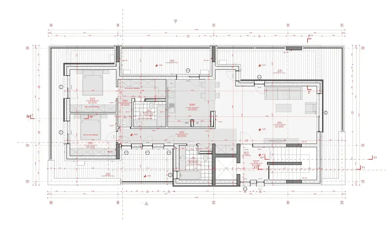 Configurarea camerelor contribuie semnificativ la confortul locuinței, oferind suficient loc pentru mobilare și decorare, dar și pentru a va bucura de activitățile zilnice. Livingul + bucataria deschisa au 34,93 mp creeaza o atmosferă deschisă și primitoare, ceea ce este ideal atât pentru relaxare, cât și pentru primirea oaspeților.
