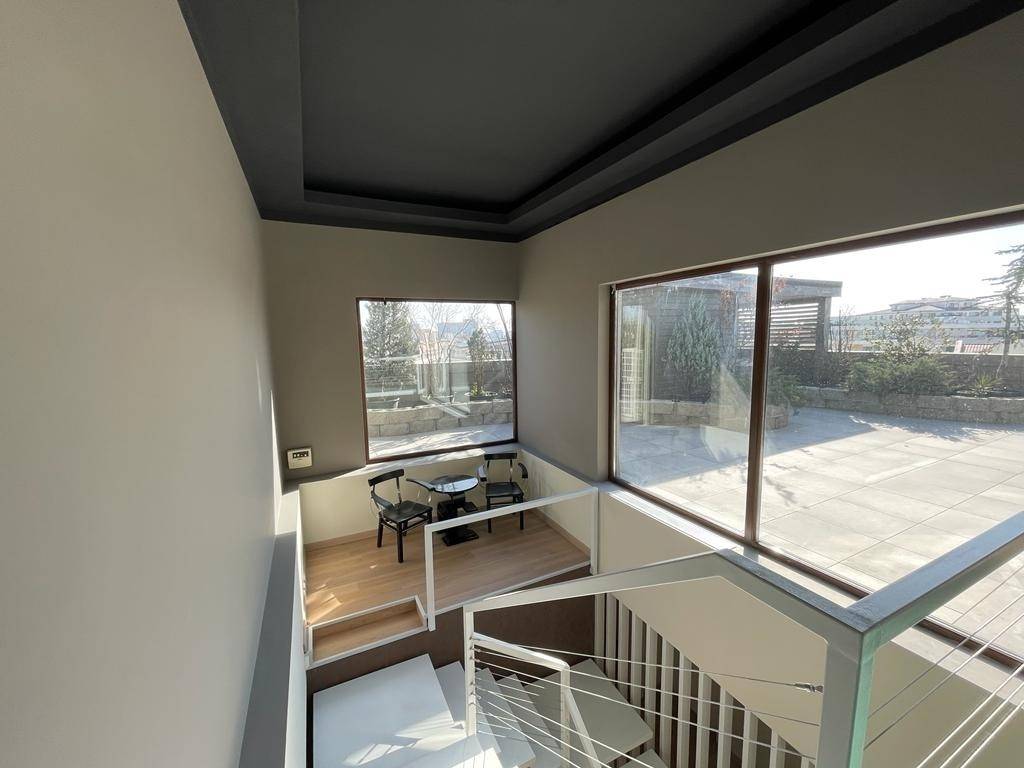 Nivelul superior este compus din living si bucatarie deschisa, in suprafata totala de cca 95 mp,