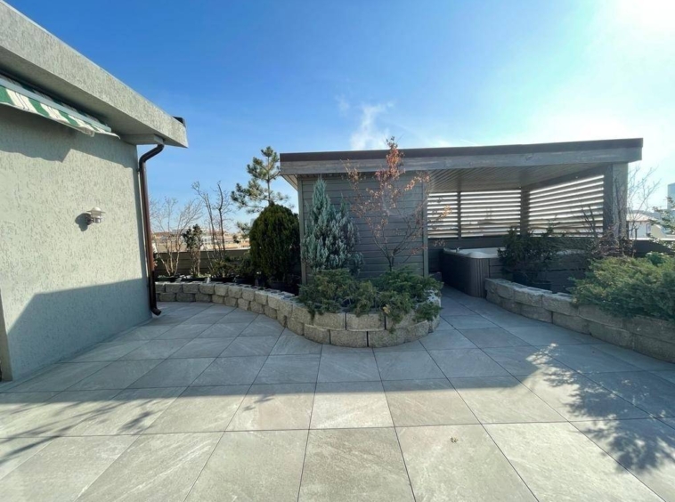 o Terasa este amenajata cu zona de plante naturale cu sistem de irigatii automat