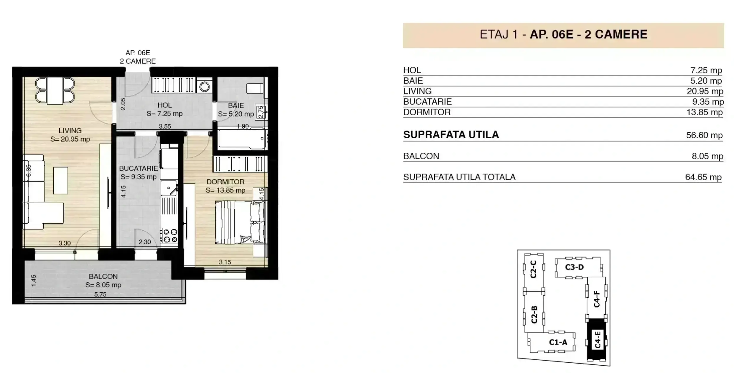 Situat într-un complex nou și aerisit, format din 6 blocuri cu regim de înălțime P+4, acest apartament îmbină armonios confortul, funcționalitatea și finisajele premium, fiind alegerea perfectă atât pentru locuit, cât și pentru investiție.