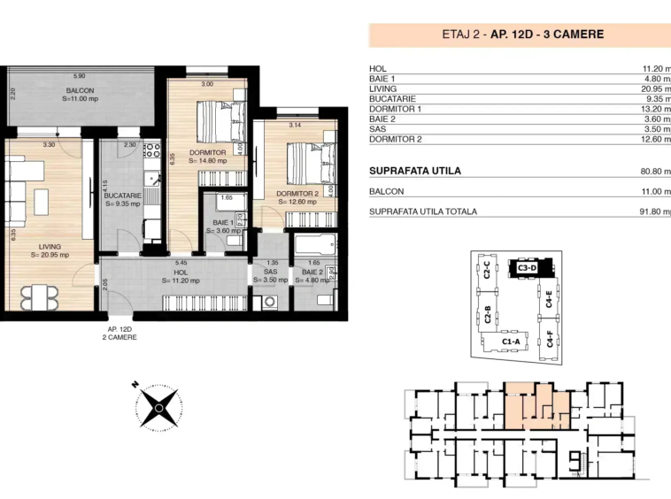 -Două dormitoare luminoase, pentru odihnă deplină