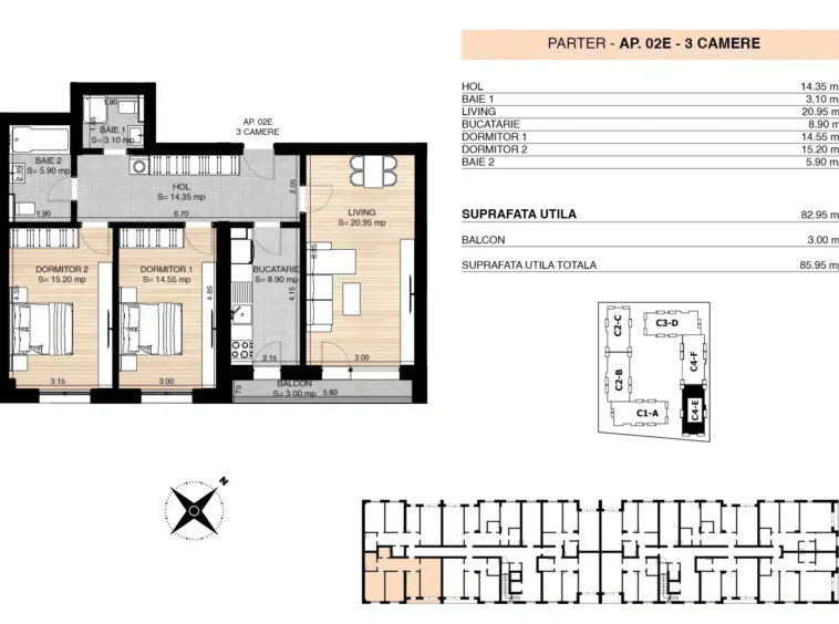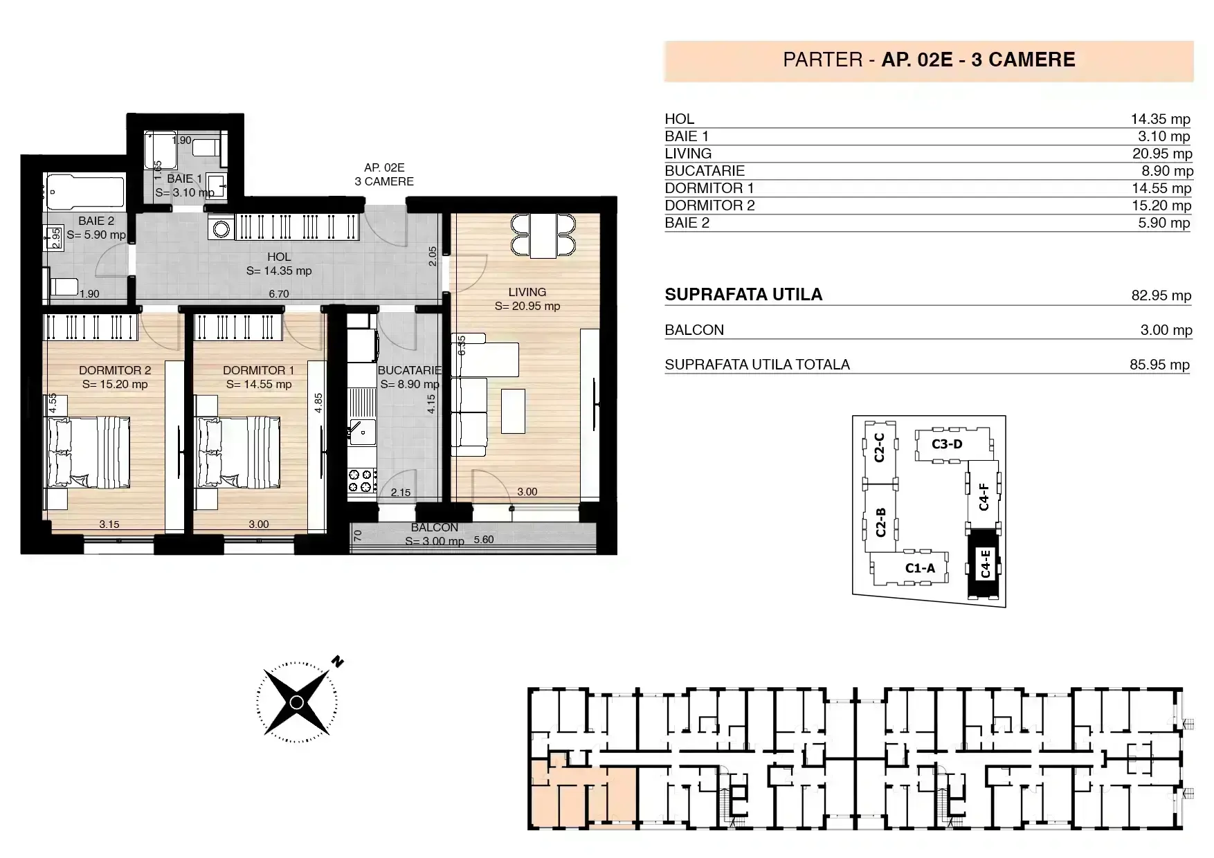 Aflat la parterul, cu o suprafață utilă de 83 m² si totală de 130 m² apartamentul este prevazut cu o gradina proprie in suprafata de 55 m.p. Cladirea cu 4 etaje in care se afla acest apartament face parte dintr-un ansamblu rezidential cu finalizarea in prima parte a anului 2026.Incalzirea prin pardoseala, contorizarea dedicata, liftul, spatiile comune elegante asigura tot confortul necesar.
