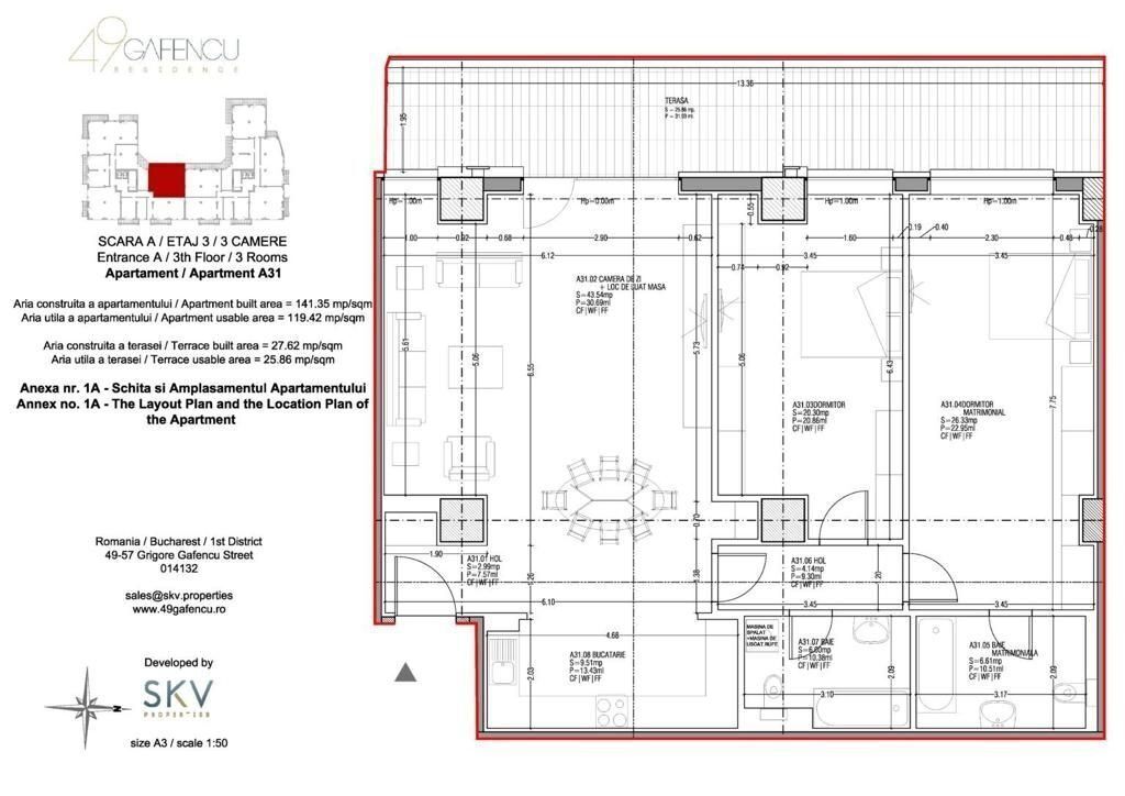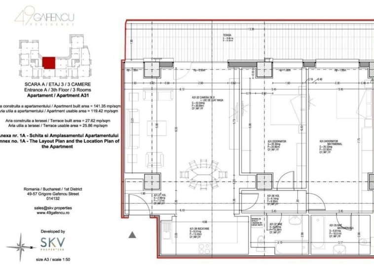 Descoperă o oportunitate rară de a experimenta viața într-un apartament desăvârșit, disponibil atât pentru închiriere, cât și pentru vânzare, în prestigiosul ansamblu rezidențial Gafencu 49. Situat la etajul 3 al imobilului, acest spațiu generos și luxos se întinde pe o suprafață utilă de 120 mp, completată de o terasă impresionantă de 26 mp.
